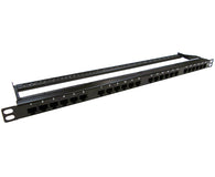 - CAT5E Network 24-Port Patch Panel, Half-U High Density, Strain Relief Support Bar