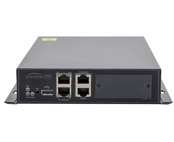 The 4K Resolution Video Decoder supports up to 4K (3840 x 2160) resolution outputs via HDMI or VGA, providing smooth images with accurate color and image scaling. It can decode video streams up to 12MP resolution from ONVIF Profile S compliant cameras, supports multiple video compression formats (H.265, H.264, MPEG4, MPEG2, MJPEG), and offers multi-window display configurations for up to 16 camera views. The device also supports 2-way audio decoding and integrates easily with Uniview Tec's Guard Station VMS for seamless camera management. It is designed for professional video surveillance installations requiring high-resolution decoding and display.