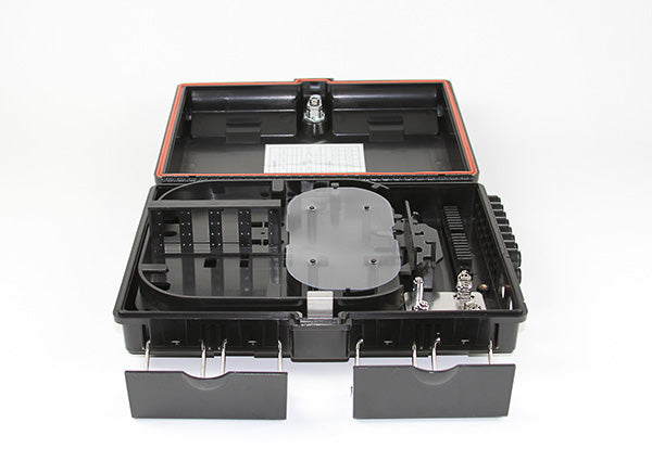 Wall Mount Fiber Optic Distribution/Termination Box with Integrated Splice Tray, Spool and Lock in Black