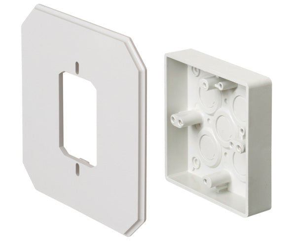 The siding Box Kits are a great way to install fixtures and receptacles on a new or old siding. Siding Box Kits come with a paintable white UV-rated plastic, making it perfect for outside use and giving it a long outdoor life. this UL-listed electrical box works on all siding types before or after the siding is up. Flanges may be removed for retrofit work and an NM cable connector is included with the kit.
