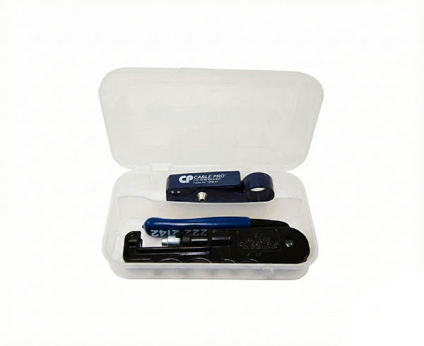 - Qty 1 - Tech Express Kit, Linear Compression Tool, RG59 and RG6 Cable Strip Tool