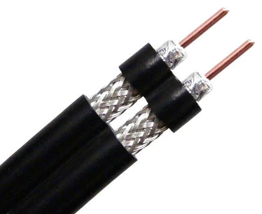 Regular price $22.00 USDRegular priceUnit price perSale price $22.00 USDDual RG6 Riser CMR Coaxial Cable, 100% AL Foil, 60% AL Wire Braid, 18 AWG CCS, 229FT, Black