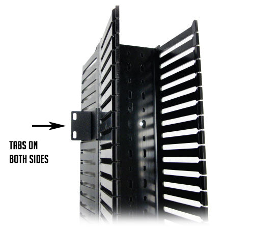The Vertical Slotted Duct Cable Manager w/ Cover provides vertical cable management on the center of a network rack. This Double-Sided Vertical Cable Manager is 7-foot tall. This product will keep your cables organized and your rack looking good. This product features a slotted duct design to allow cables to be routed to patch panels, switches, servers or any rack mounted equipment. The removable covers makes routing your cables easy and keep your system looking neat. Mounting screws included.