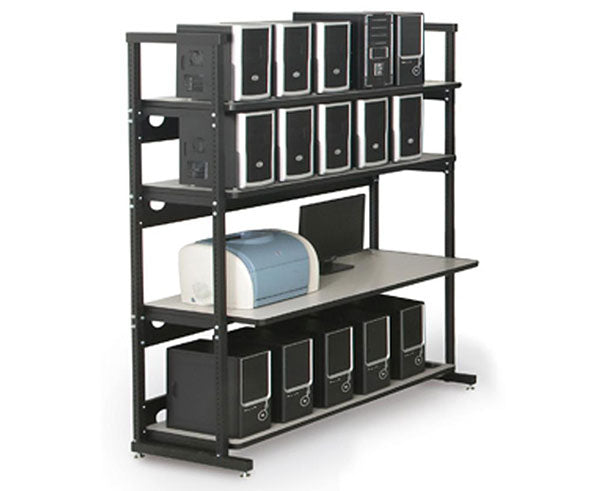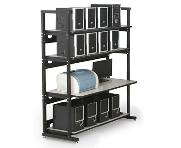 The Kendall Howard Performance Plus LAN / Network Furniture System is easy to configure. However, some applications do not require any special configurations. For that reason, Kendall Howard offers some standard configurations that may meet your requirements. The Kendall Howard Performance Plus 4-Post LAN Station includes three 24" deep shelves, one 30" deep shelf, two side frame kits, four shelf support kits, and four back plates. Each shelf will support 850 pounds and is adjustable in 1" increments. The White Nebula laminate is accented with black rubber T-molding, which compliments the black powder coat finish of the frame, back plates, and shelf supports. The 4-Post Performance Plus LAN Station has a sleek finish that has clean lines and that will compliment any office or IT lab environment. Kendall Howard manufactures the 4-Post Performance Plus LAN Stations in the USA and are backed by our Limited Lifetime Warranty.