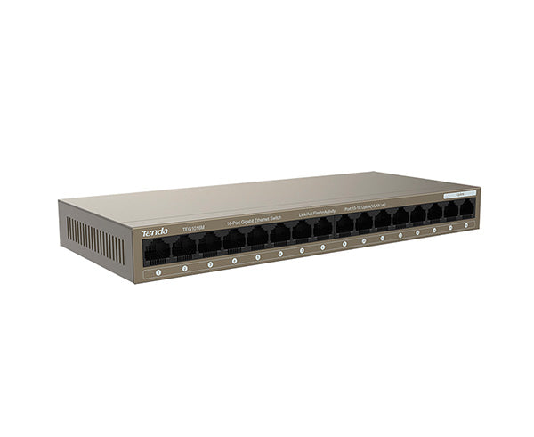 TEG1016M is a Gigabit unmanaged Ethernet switch developed by Tenda. Its full-duplex transmission rate can reach 2000 Mbps, ensuring timely transmission of large files and smoothness of videos. The switch features a mini steel shell, a fanless design, and wire-speed forwarding of all ports. It comes with a power adapter for power supply, and can connect to such network devices as computers and IP cameras. The switch also supports one-key isolation mode switching. With the advantages of plug and play functionality, easy installation and high performance, it offers a cost-effective solution for video surveillance and wired networking in such small and medium-sized scenarios as small and micro businesses, villas, and stores.