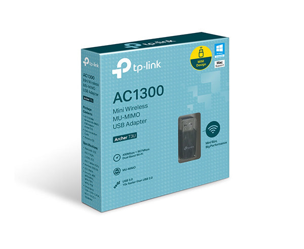 - Qty 1 – AC1300 Mini Wireless MU-MIMO USB Adapter (Archer T3U)