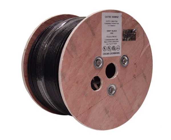 - CAT5E Outdoor Ethernet Cable, Black Jacket, 1000ft In A Pull Box Or On A Wooden Spool