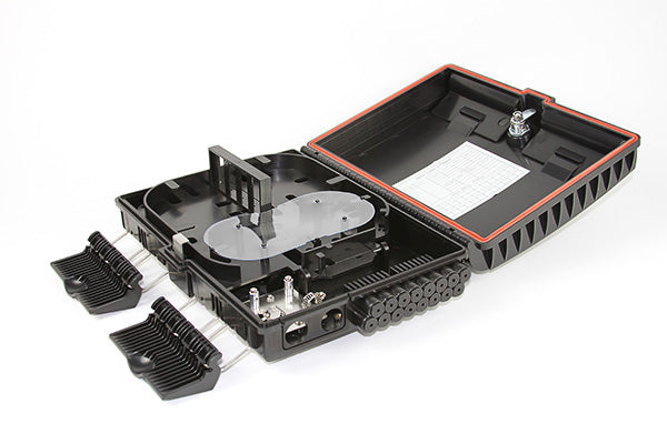 This FDU is capable of housing 16 simplex SC adapters or 16 duplex LC adapters and is offered in a black PC+ABS plastic with a lock for security. Applications include: FTTH, FTTB, FTTC, Telecommunication Network, CATV, Local Area Network.