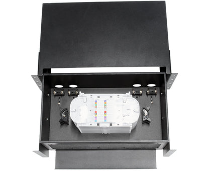 - Qty 1 - Rack Mount Fiber Distribution Patch Panel with Splice Trays, Slide-Out, FDU, 2U
