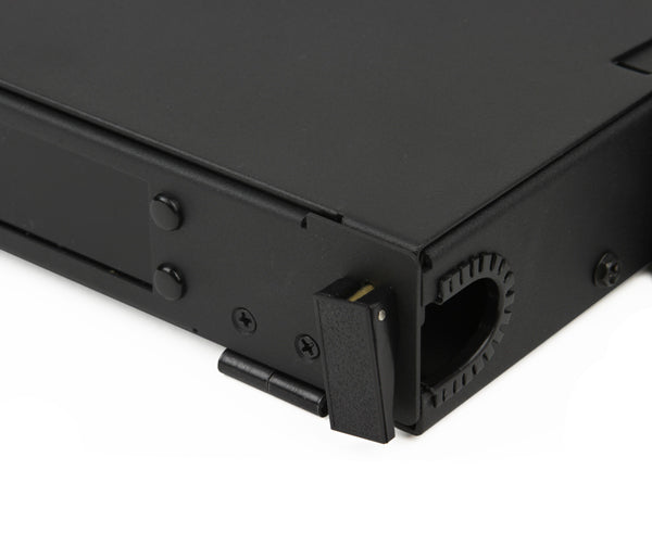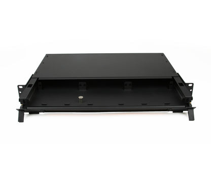 Rack Mount Fiber Distribution Patch Panel Enclosure, Slide-Out, 1RU, Holds 3 Adapter Panels, Up to 72 splices, Black