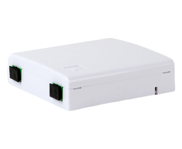 This wall mount surface mount fiber box houses two SC/APC fiber adapters. This low profile fiber distribution unit provides interconnection between central office and multi-dwelling units for FTTx application. Applications include: FTTH, FTTB, FTTC, Telecommunication Network, CATV, Local Area Network.