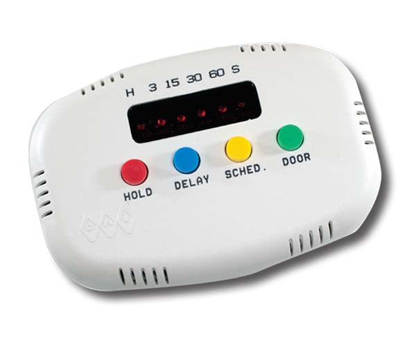 The Door Man monitors the position of the garage door and automatically closes after a preset delay of 3, 15, 30 or 60 minutes.