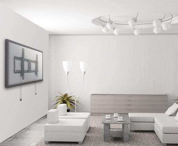 This lockable tilt-angle adjustable wall bracket is perfect for hotel rooms or public place installations. Supporting most 37" to 80" flat TVs weighing up to 154 lbs, it positions the display 1.9 inches (49mm) off the wall when set straight up. Hardware is provided for wood studs or concrete wall mounting.