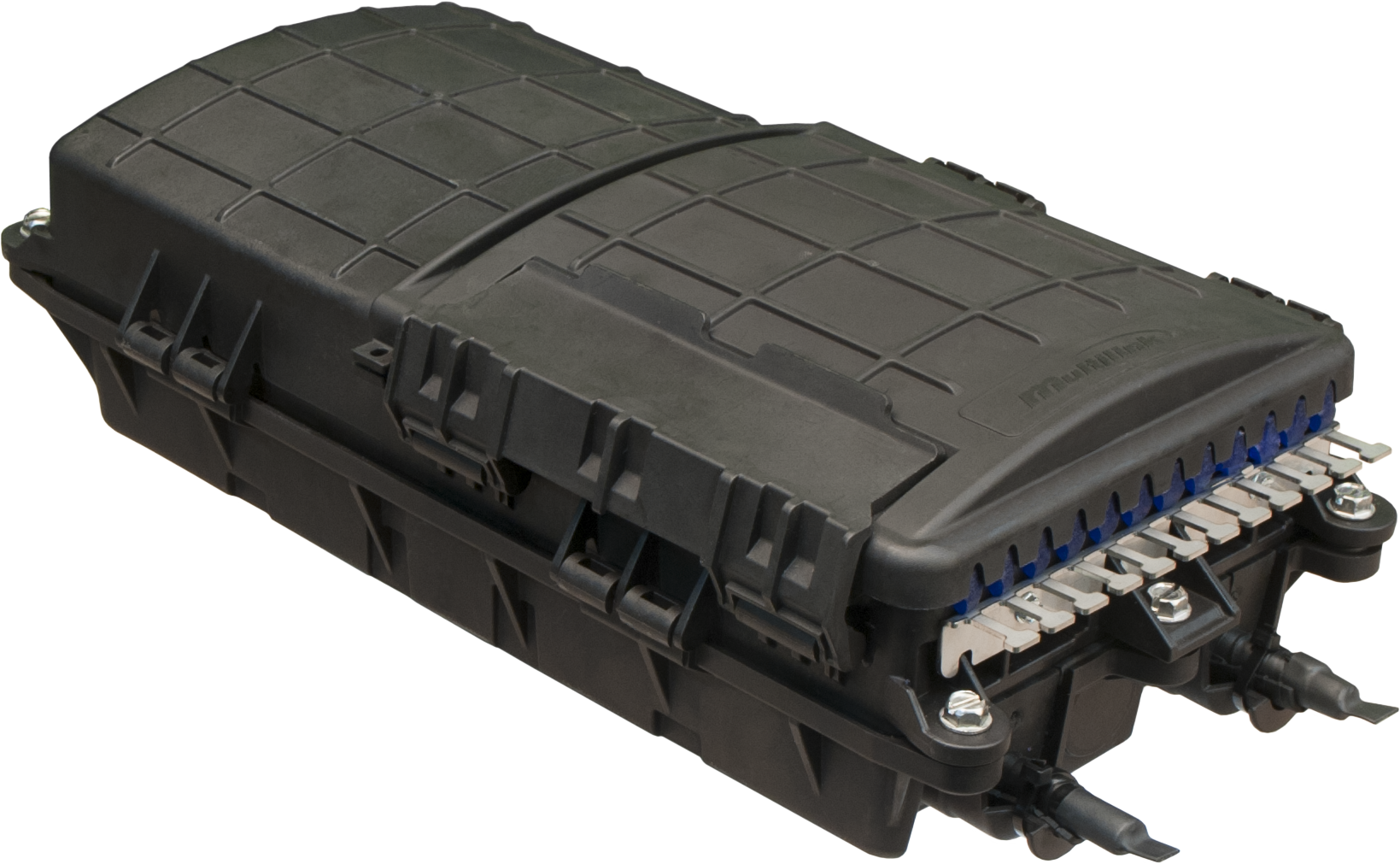 Similar to dome splice enclosures, the Optima™ allows a one sided entry for both feeder and distribution drop fibers.