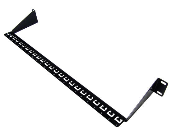 The 1U Rear Cable Support Bar has a rugged black powder-coat to match your racks and cabinets and pre-numbered 24 cable anchor points for installing cable ties. Keeps rear cables neatly organized and supported ensuring maximum communication performance by minimizing cable movement that may cause cables to wiggle loose. Fits in any standard 19" rack, bracket, cabinet or enclosure.