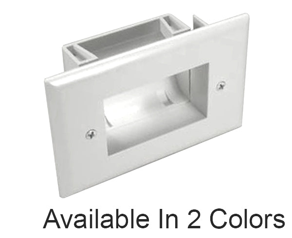 Our recessed slim fit low voltage cable plates are designed for low voltage data, network, or home theater applications. These plates have a flexible opening that remain snug around cables as they pass through the wall. We carry several different options for entry/exit plates, all constructed with high grade quality materials suitable for professional and home use. The recessed entrance plate offers a great looking finish and easy installation.