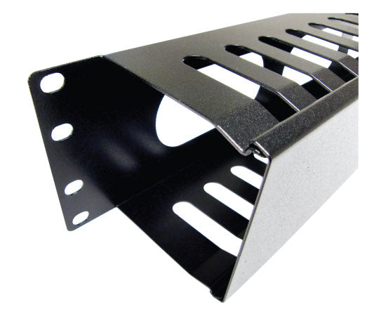 Our 2U Horizontal Slotted Cable Management Duct provides a simple solution for fiber and copper cable organization and management. Available and mount on standard 19" TIA equipment racks with top, bottom or side cable entry. Unique spacers allow the duct to be used to its full capacity, while providing efficient use of space. This is a Single Sided, 2U Slotted Duct Wire Manager with a metal cover.