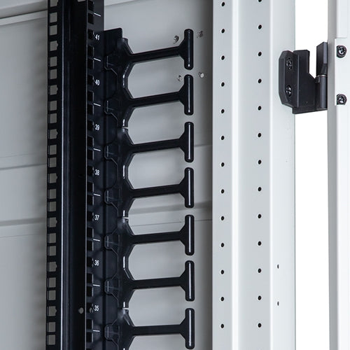 Keep your network organized and efficient with our Vertical Finger Cable Management Panels, designed specifically for VC5 equipment mounting rails. These panels provide a single column of plastic cable management fingers, ideal for neatly routing and securing cable bundles within your server cabinet. Compatible with both 24" (600mm) and 31.5" (800mm) wide network/server cabinets, each set includes two panels for flexible top or bottom installation. Available in 42U, 45U, and 48U sizes to match your cabinet height requirements. Installation hardware is included for quick and easy setup.